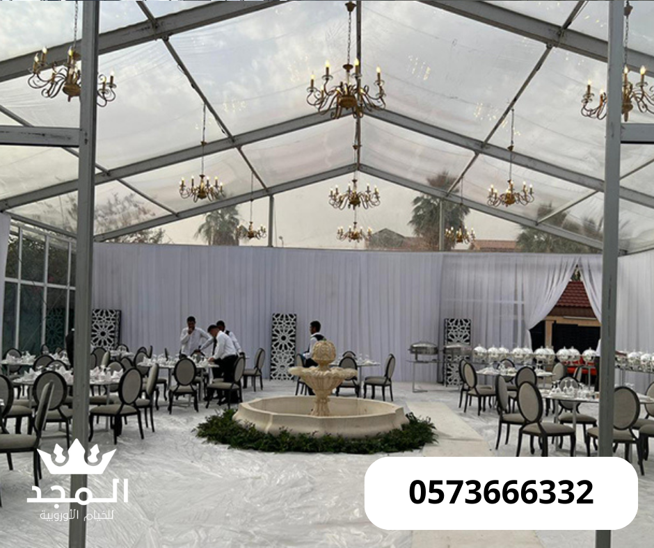في “المجد للخيام”، نضع خبرتنا بين يديك لتقديم أفضل حلول تأجير الخيام الأوروبية الفاخرة، ومستلزمات المناسبات بجودة عالية وتنظيم احترافي.