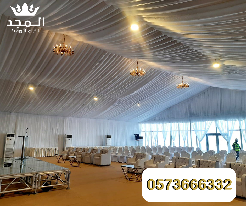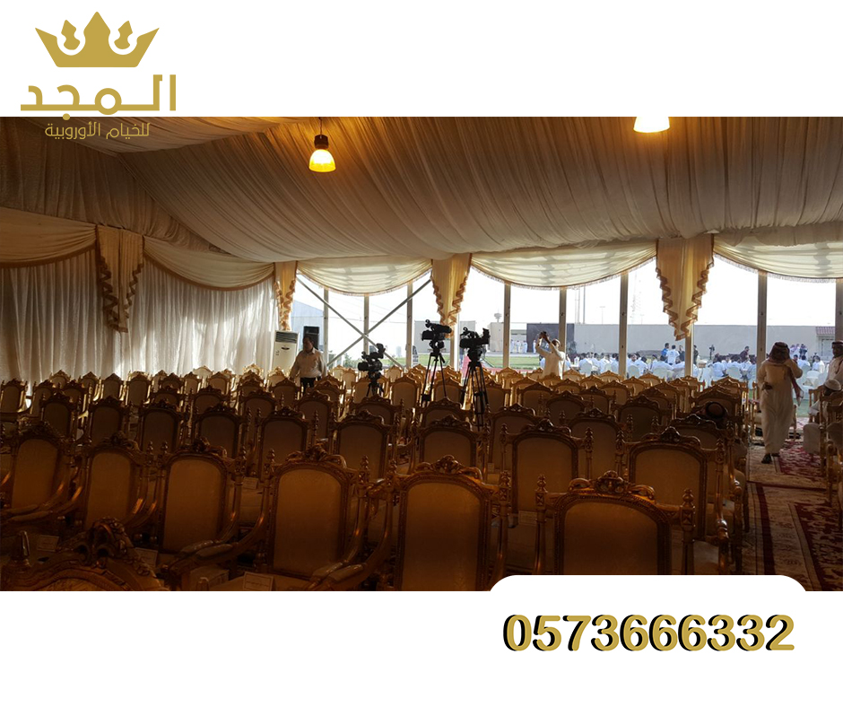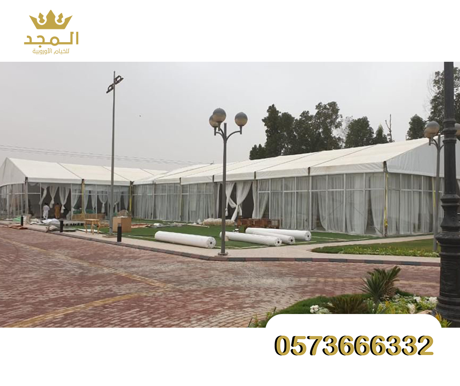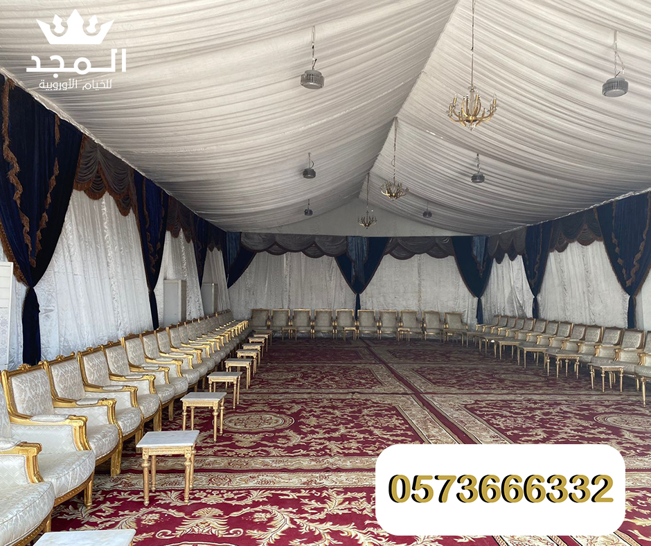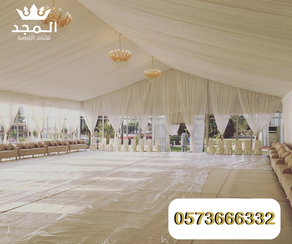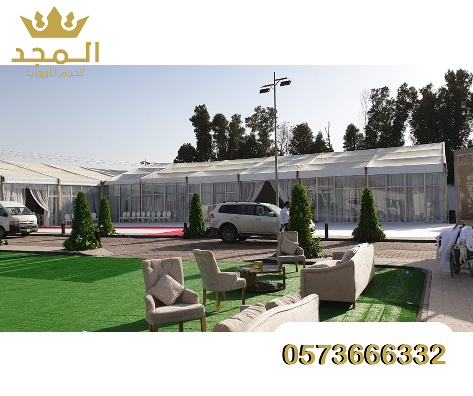 ومن هنا تقدم لكم شركة المجد خدمة تأجير الخيام الأوروبية بجودة عالية وتصاميم حديثة تضمن الراحة والأمان والفخامة لضيوفكم.
