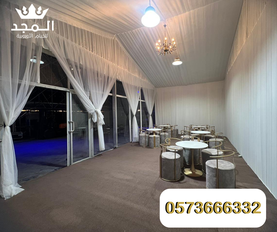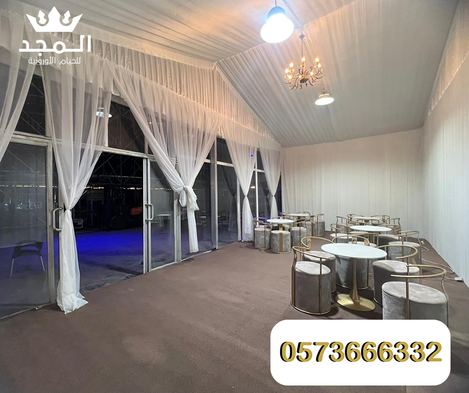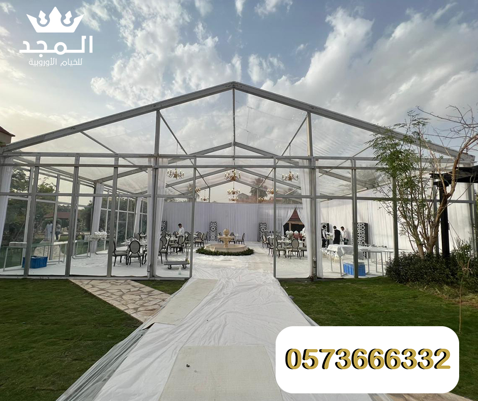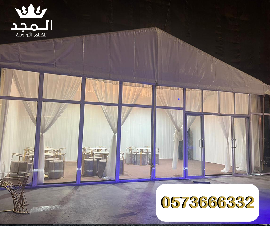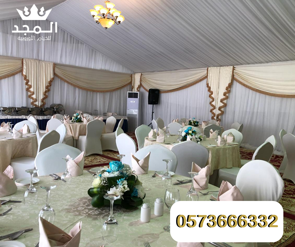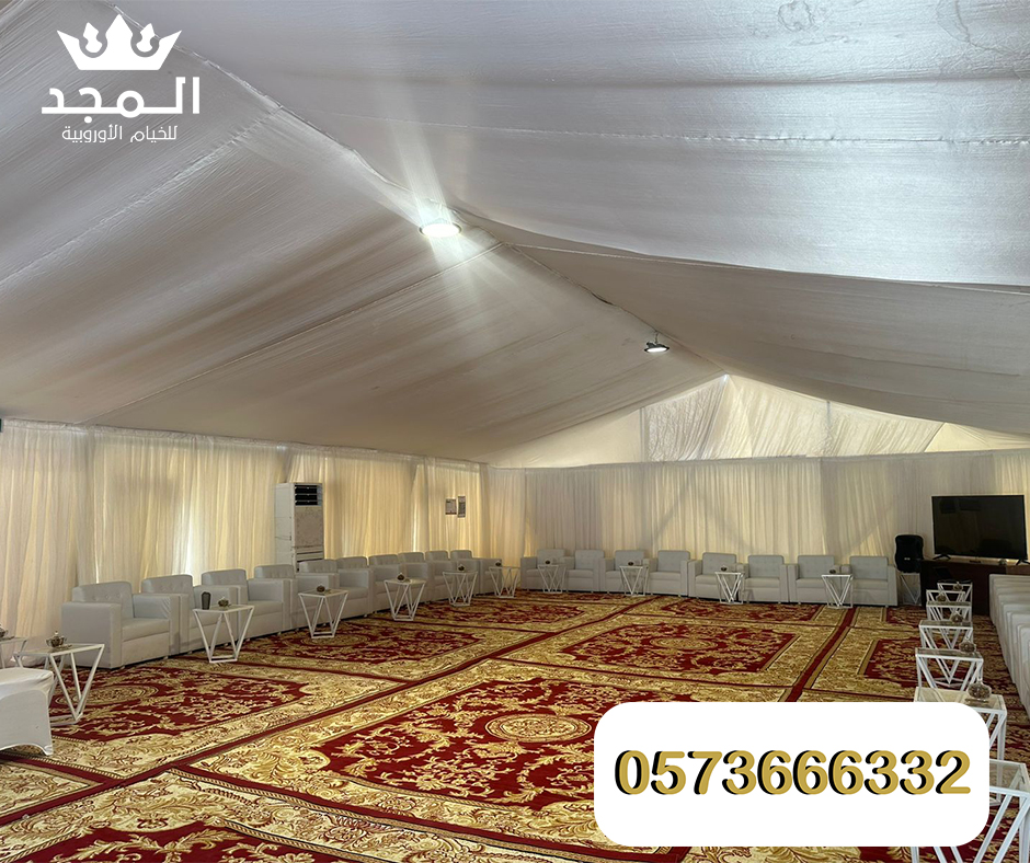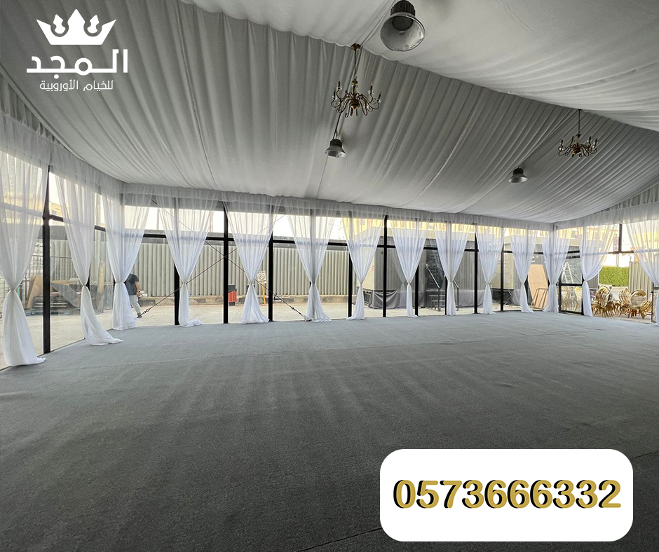 ومن هنا تقدم لكم شركة المجد خدمة تأجير الخيام الأوروبية بجودة عالية وتصاميم حديثة تضمن الراحة والأمان والفخامة لضيوفكم.
