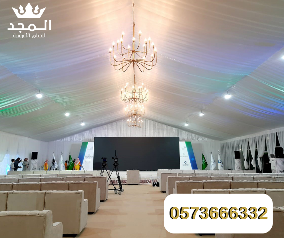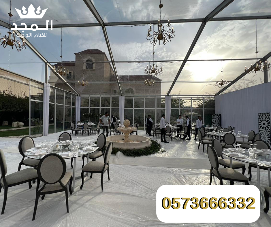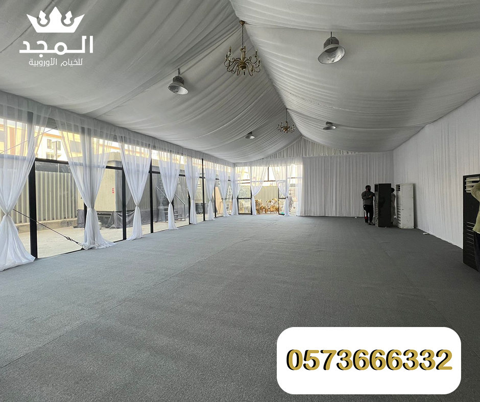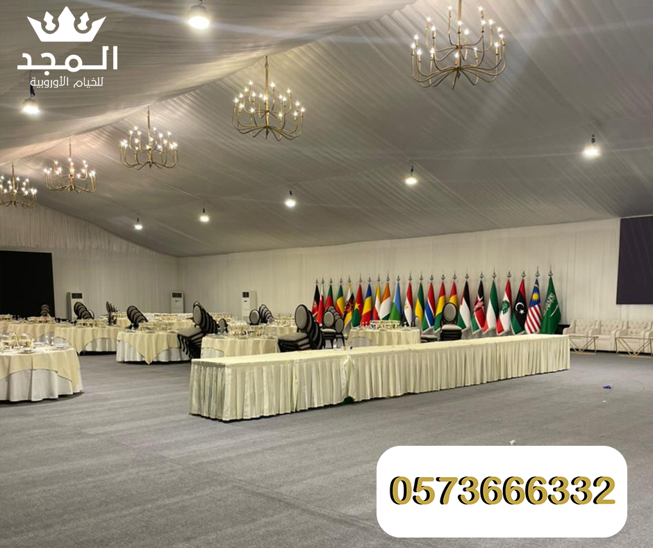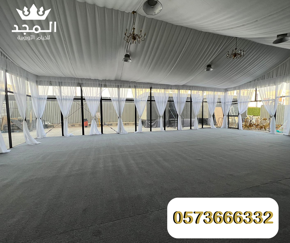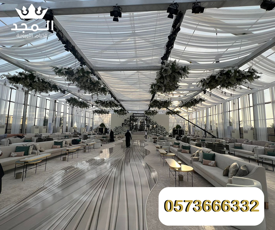 ومن هنا تقدم لكم شركة المجد خدمة تأجير الخيام الأوروبية بجودة عالية وتصاميم حديثة تضمن الراحة والأمان والفخامة لضيوفكم.