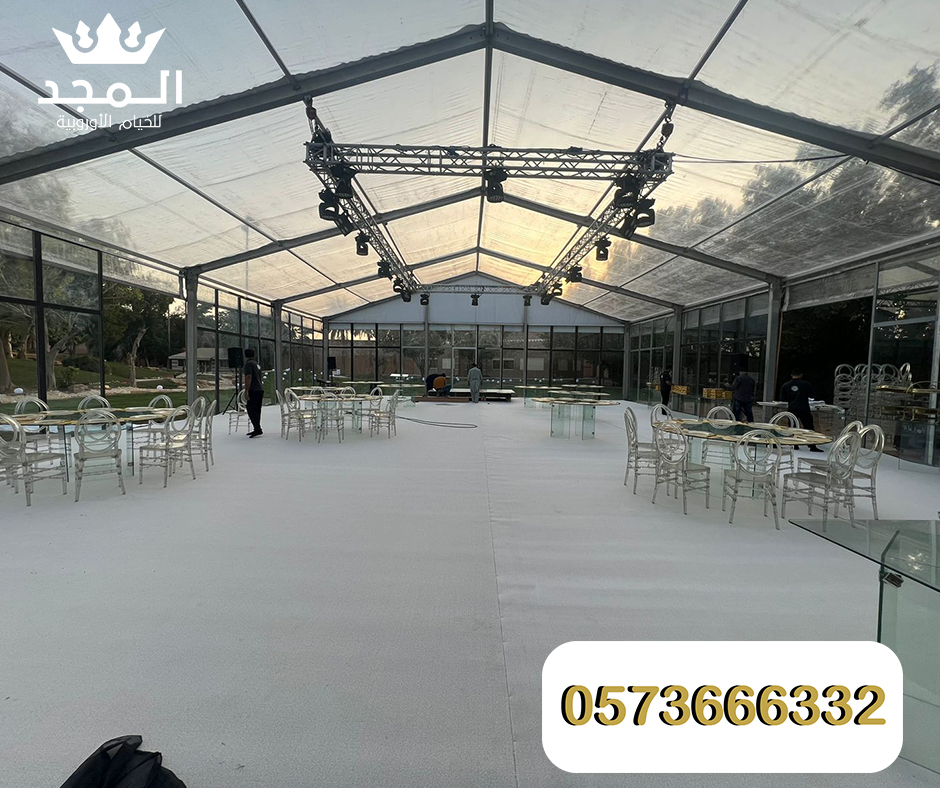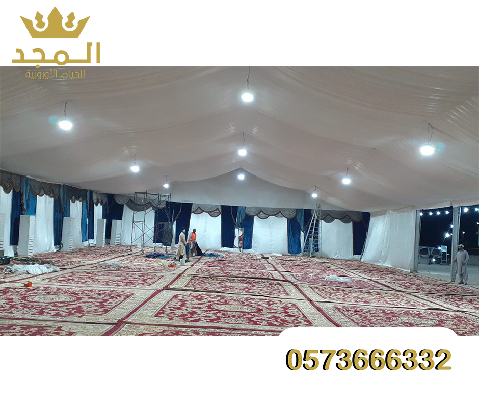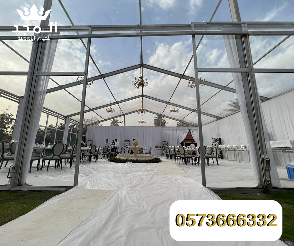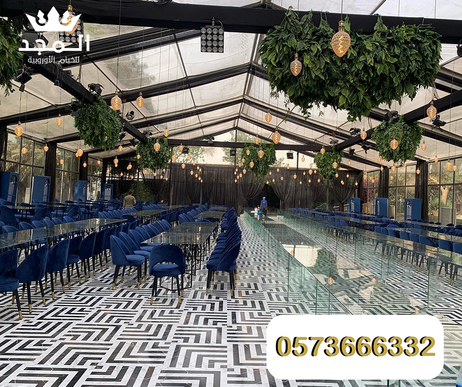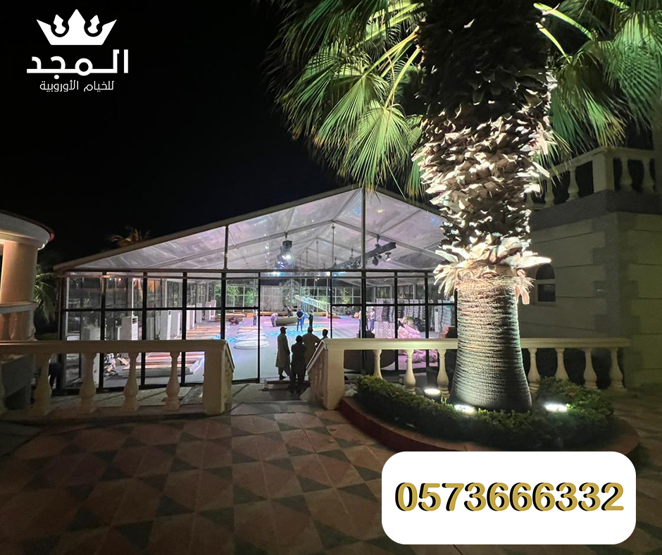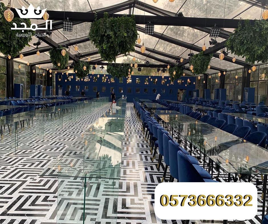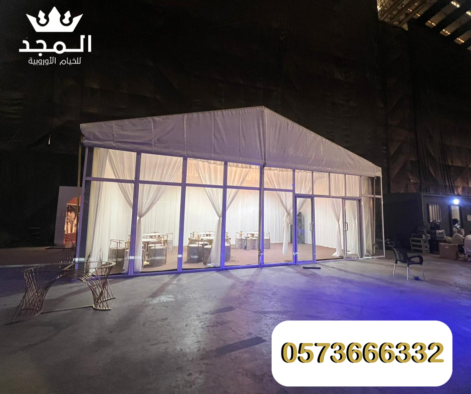 ومن هنا تقدم لكم شركة المجد خدمة تأجير الخيام الأوروبية بجودة عالية وتصاميم حديثة تضمن الراحة والأمان والفخامة لضيوفكم.